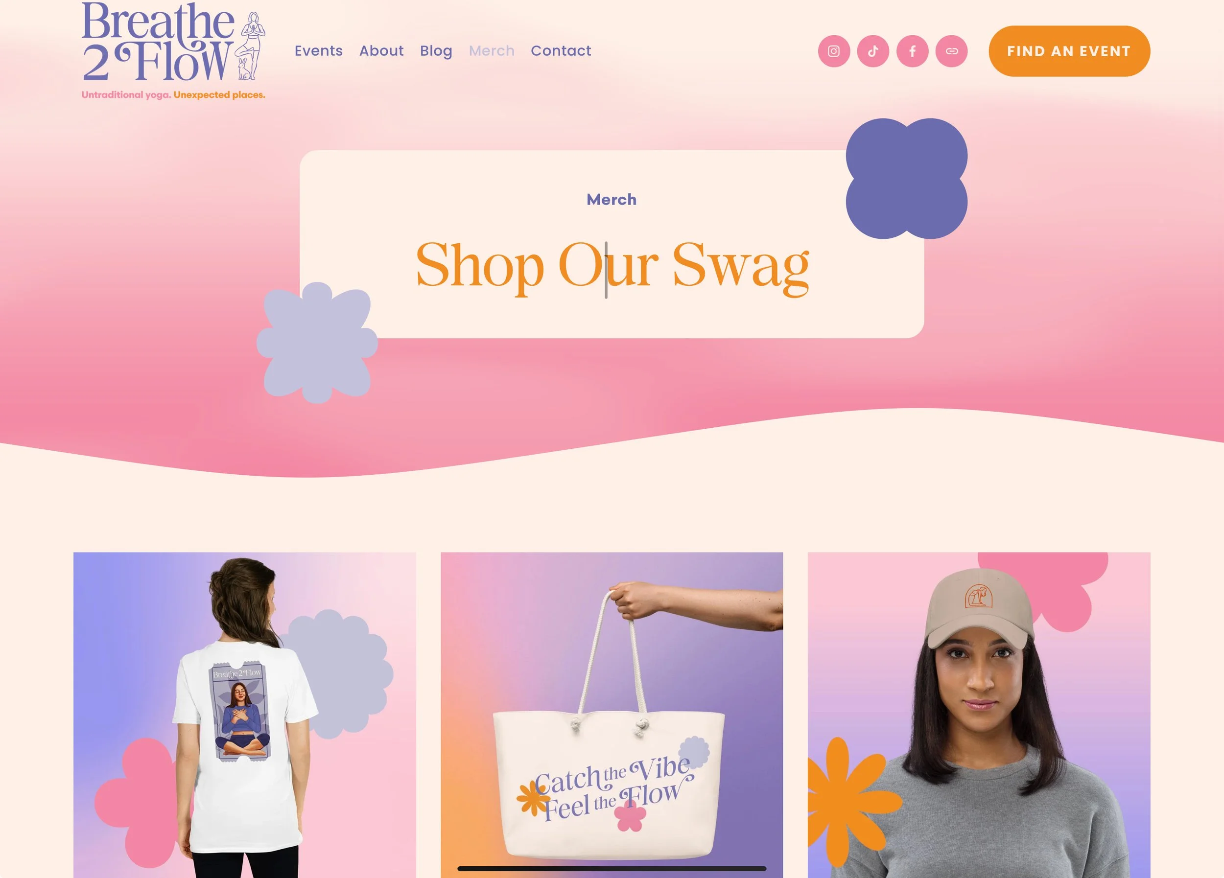 To make this more tangible, let’s look at a client story. Recently, I worked with Breathe2Flow, a yoga event brand, to expand their website with a branded merch shop.